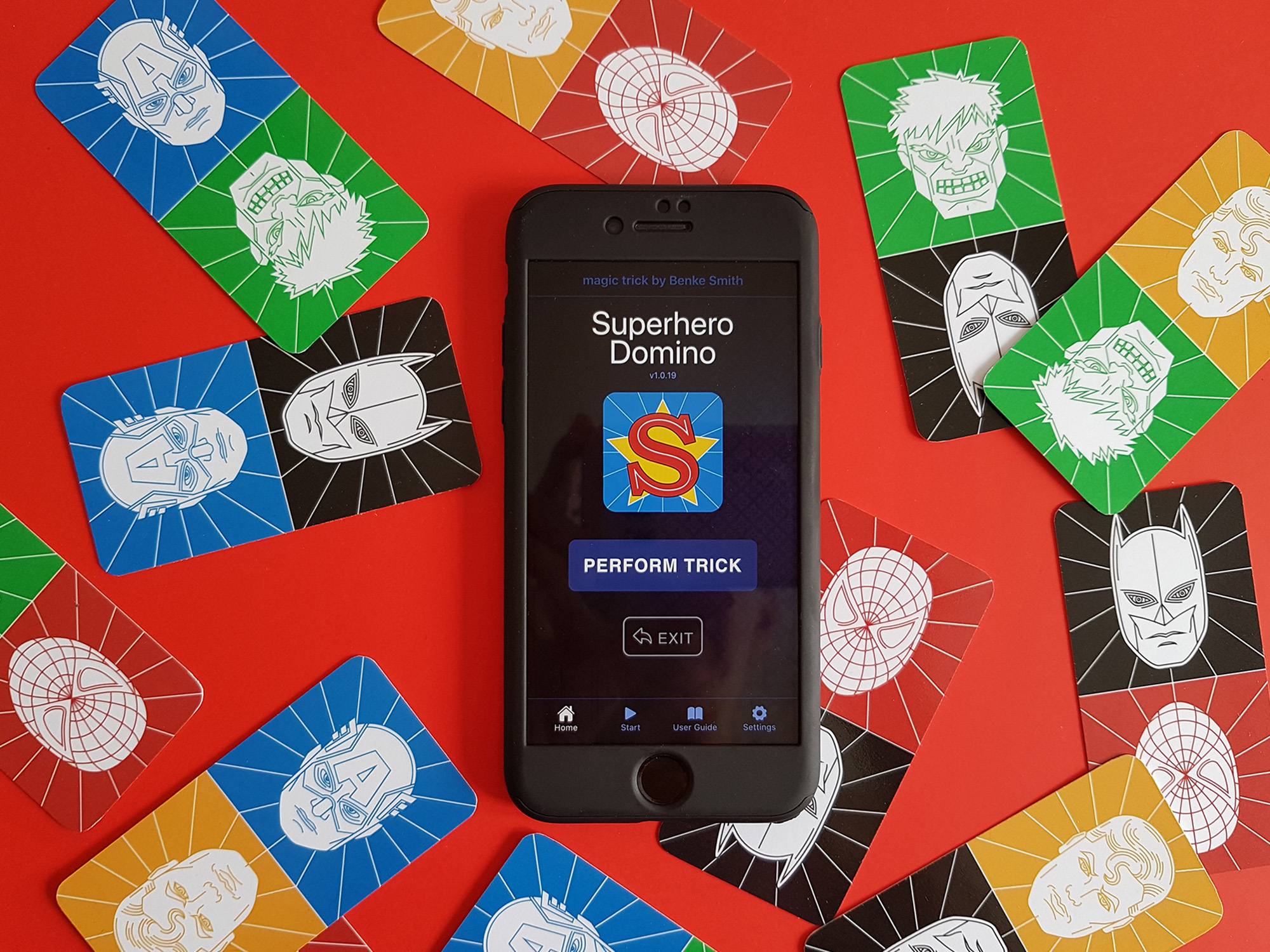 Kártya illusztrációk a Superhero Domino bűvész apphoz